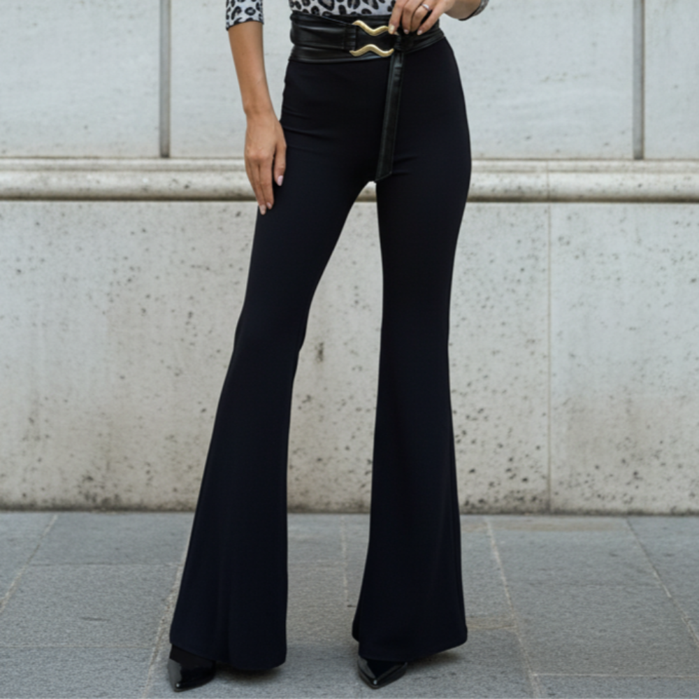 These pants are elegant and sophisticated. Thanks to their fitted silhouette and classic 70s flared lines, they elongate the figure and add a touch of class to the outfit, offering a contemporary and very trendy look.
