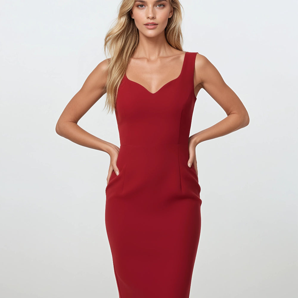 Abito a tubino con bretelle larghe e scollatura a cuore.